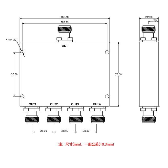 分合路數(shù):四路功分器